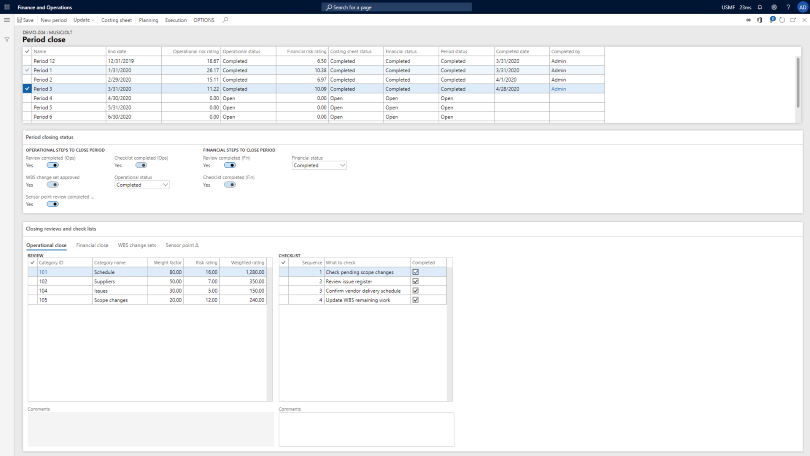 As projects pass through schedule milestones, formal risk reviews can be configured. The resulting risk assessment is published in various project dashboards. The same goes for formal risk reviews that can be enforced during the month-end process along with mandatory checklists to enforce corporate governance.